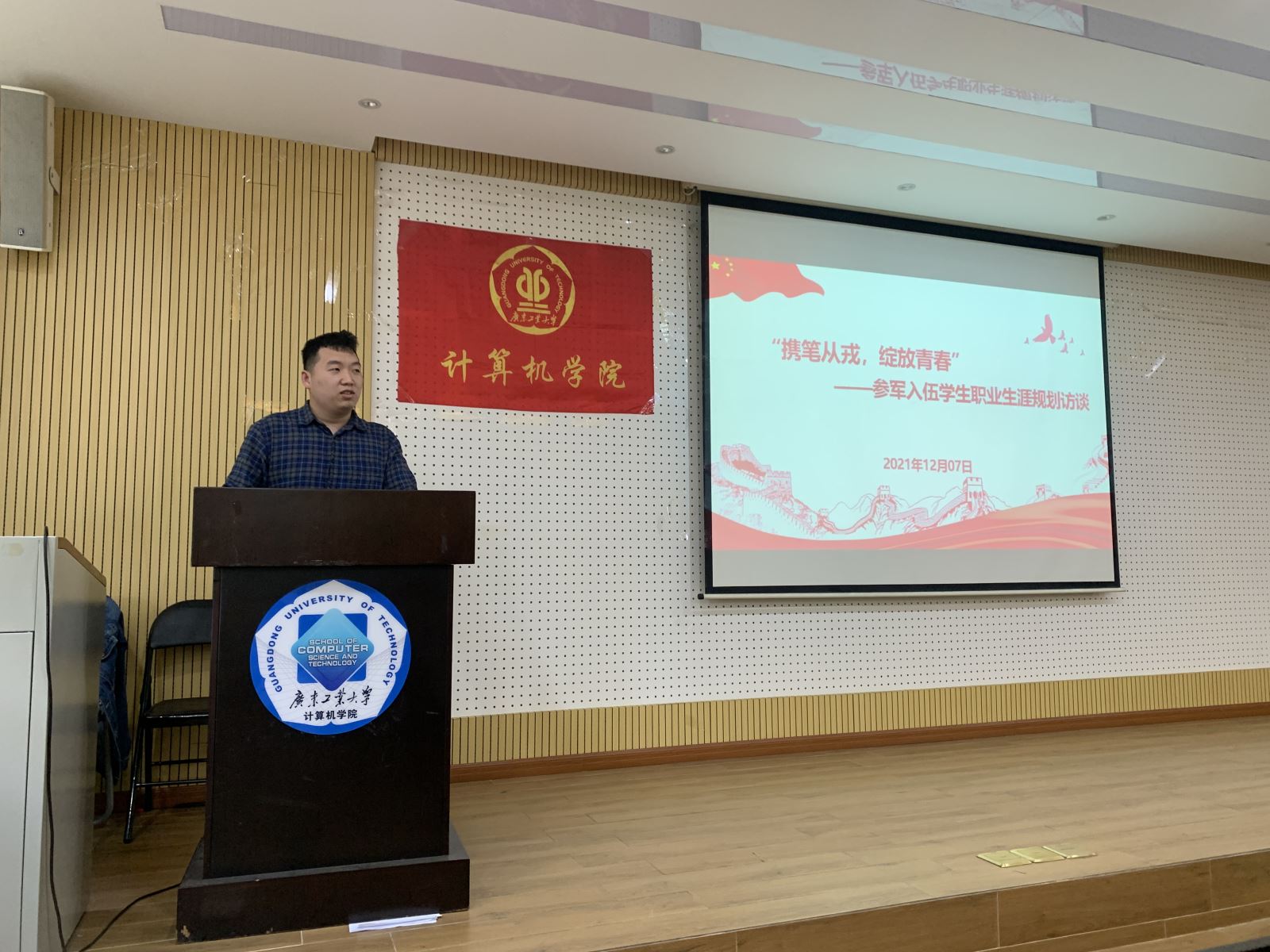 为深入学习宣传习近平强军思想,大力强化国防教育,充分调动大学生参军入伍积极性,努力实现参军入伍数量、质量“双提升”。2021年12月7日,第四届就业创业文化节之“携笔从戎,绽放青春”——参军入伍学生职业生涯规划访谈在工学一号馆216会议室开顺利举行。学院征兵联络员王文兵老师、三名优秀退伍大学生彭蕾颖、阿布都吉列力·阿布都里克木、戴山磊及部分意向入伍学生参加本次访谈。